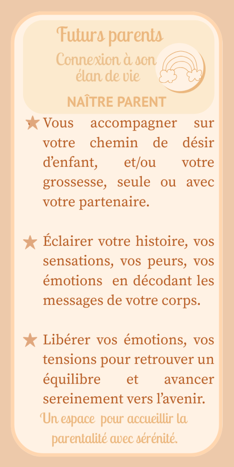 Cet accompagnement soutient un chemin vers la parentalité avec plus de sérénité, de confiance et d'alignement, en permettant au corps de se rééquilibrer et de se préparer en douceur à cette nouvelle étape de vie.